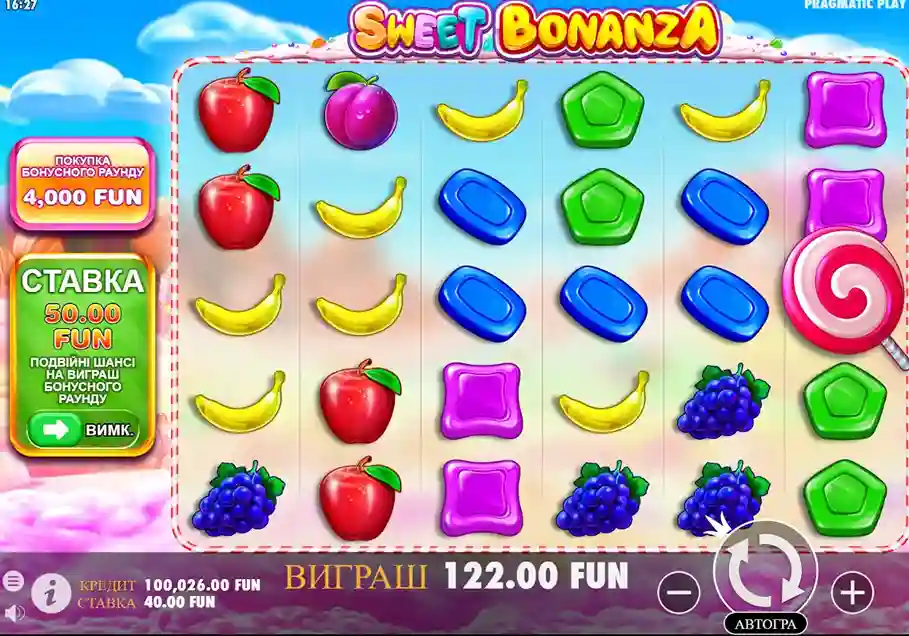 Ігровий автомат Sweet Bonanza — це яскравий фруктово‑цукерковий світ із соковитими символами, плавними анімаціями та приємною музикою. Цей фруктовий слот створює атмосферу легкості, де кожне обертання дарує вибухи кольорів і каскадні виграші.